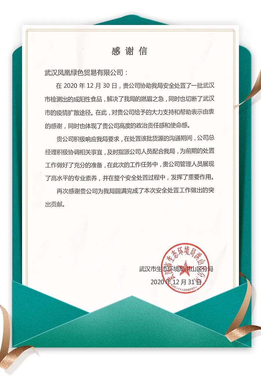 事后,武漢市生態(tài)環(huán)境局向武漢鳳凰項(xiàng)目發(fā)來感謝信,信中表示,在此次工作任務(wù)中,武漢鳳凰項(xiàng)目體現(xiàn)出了高度的政治責(zé)任感和使命感,展現(xiàn)出高水平的專業(yè)素養(yǎng),發(fā)揮了重要作用。