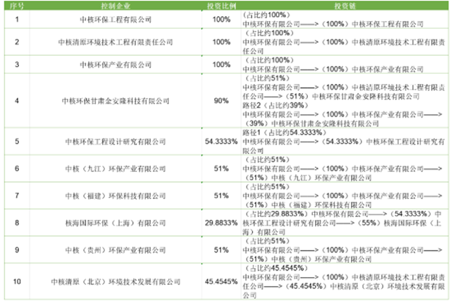 中核環(huán)保所控制的環(huán)保企業(yè)