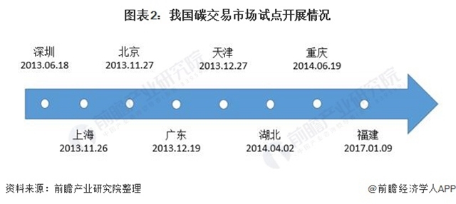 2011年10月國家發(fā)展改革委印發(fā)《關(guān)于開展碳排放權(quán)交易試點工作的通知》,批準(zhǔn)北京、上海、天津、重慶、湖北、廣東和深圳等七省市開展碳交易試點工作。隨后2017年1月9日福建也開展了碳交易試點工作,因此截至2021年我國共有8個碳交易試點省市。