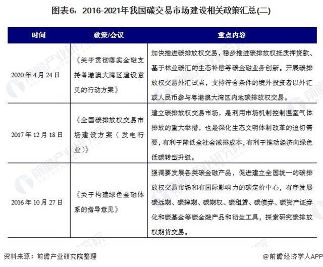 碳排放權(quán)交易體系是實現(xiàn)低成本碳減排的關(guān)鍵。2016-2021年是我國碳交易市場的黃金時期,我國出臺了一系列政策建立包括建立相關(guān)綠色金融、碳中和等來推動碳交易市場發(fā)展,具體政策匯總?cè)缦拢?/div>