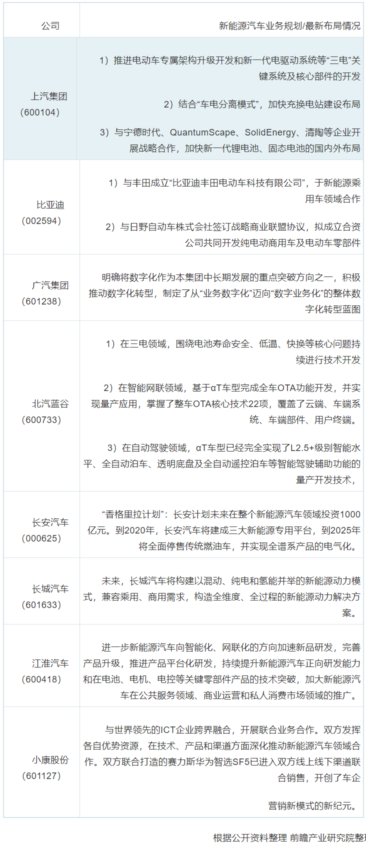 4、新能源汽車行業(yè)上市公司新能源汽車業(yè)務(wù)規(guī)劃對比