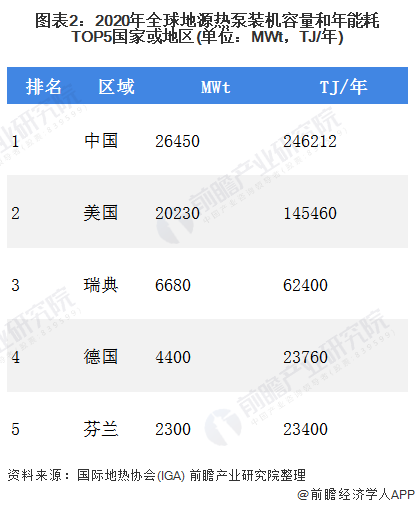 關于全球地源熱泵裝機情況,根據(jù)國際地熱協(xié)會(IGA),全球地源熱泵裝機容量最大的五個國家是:中國、美國、瑞典、德國和土耳其,占世界的71.1%。2020年我國地源熱泵裝機容量26450MW,位居全球第一位,并且是連續(xù)多年位列世界第一,地源熱泵產(chǎn)業(yè)已走在世界前列;