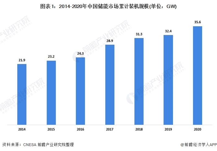 截至2020年底,中國(guó)已投運(yùn)儲(chǔ)能項(xiàng)目累計(jì)裝機(jī)規(guī)模為35.6GW。其中,抽水蓄能的累計(jì)裝機(jī)規(guī)模最大,占比達(dá)到了89.3%;其次是電化學(xué)儲(chǔ)能,裝機(jī)規(guī)模占比為9.2%。為實(shí)現(xiàn)“碳達(dá)峰”和“碳中和”的發(fā)展目標(biāo),儲(chǔ)能產(chǎn)業(yè)將迎來(lái)發(fā)展的風(fēng)口。