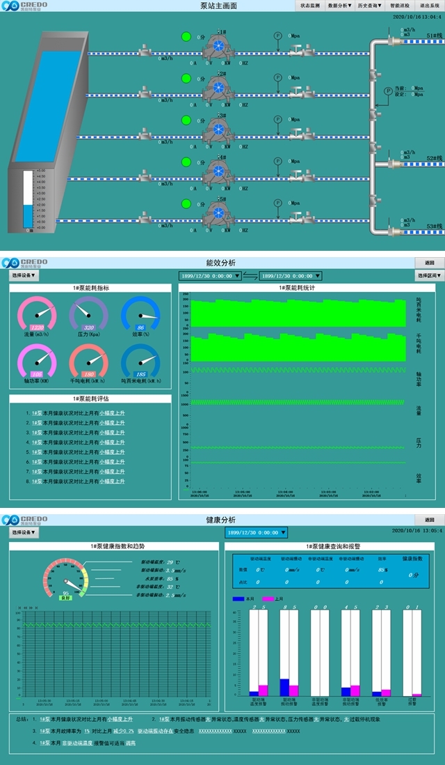 據(jù)凱利特泵業(yè)介紹,泵站智能化解決方案采用了末端壓力控制技術(shù),通過出口變壓變流量控制實(shí)現(xiàn)末端恒壓控制;采用無傳感技術(shù),不再依賴傳感器而是通過讀取泵組內(nèi)的數(shù)據(jù)來判別泵組此時(shí)的運(yùn)行狀況;采用恒溫差+最小壓力控制,減少系統(tǒng)能耗;采用效率尋優(yōu)控制技術(shù),在工況變化的情況下選擇整體效率最高的運(yùn)行方式。