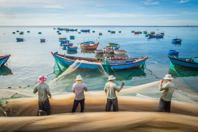越南漁民拖網(wǎng)捕魚。