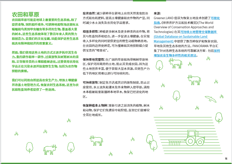 對土地的過度墾殖以及不合理的耕作利用、水土流失、過量使用化肥和農(nóng)藥正在耗盡農(nóng)田中土壤的活力?;謴娃r(nóng)田的方法包括減少耕種,更多地使用天然肥料和病蟲害防治方法以及種植包括樹木在內(nèi)的多種農(nóng)作物。這些行動有助于重建土壤中的碳儲量,使其更加肥沃,確保各國在不占用更多耕地面積的情況下養(yǎng)活不斷增長的人口。農(nóng)田的恢復還為野生動植物創(chuàng)造了棲息地。