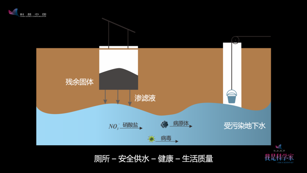 從科學的角度看,糞污滲入地下會攜帶病毒、病原體。如果廁所和取水的地方距離不遠,或者是上下游的關(guān)系,就會污染水源,導致供水不安全,影響到人的健康,進而導致人生病、生活質(zhì)量下降。