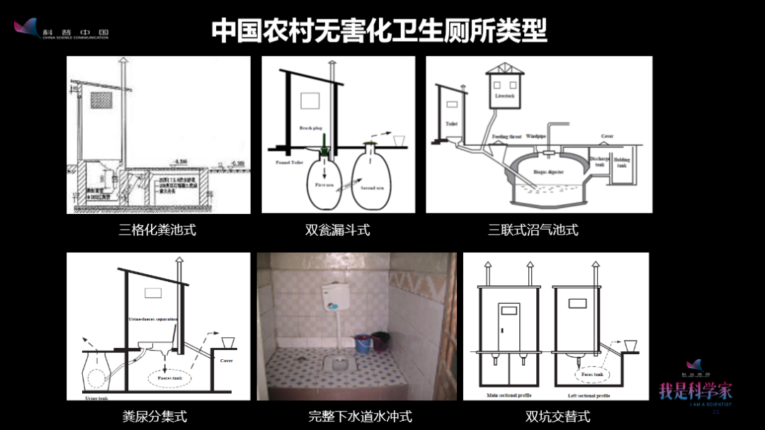 還有糞尿分離式的廁所,它把糞便和尿液單獨收集。這樣的好處是什么?尿液本身不是很臭,而且它里面的致病微生物很少,所以它處理起來就容易。糞便單獨處理時,體積非常小,很容易處理。