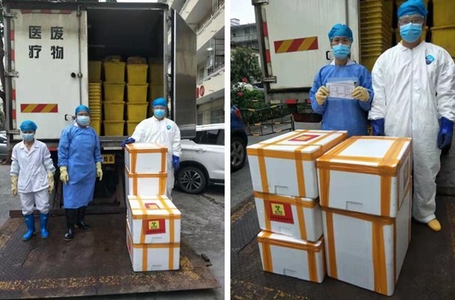 與此同時,湛江粵綠項目還推行疫期收運(yùn)措施:依據(jù)各醫(yī)療機(jī)構(gòu)反饋廢物暫存信息,制定合理、完善的廢物收運(yùn)計劃,選擇最佳廢物收運(yùn)時間,運(yùn)輸線路盡量避開人口密集區(qū)域和交通擁堵路段等敏感區(qū)域;針對實際情況對不同醫(yī)療機(jī)構(gòu)采取定期、分類收集措施,并根據(jù)廢物不同形態(tài)選擇不同盛裝設(shè)備或包裝方式;對一線醫(yī)療廢物收集、運(yùn)輸工作人員,進(jìn)行防疫技能和職業(yè)衛(wèi)生防護(hù)專門培訓(xùn);對運(yùn)輸車輛安全警示標(biāo)志進(jìn)行經(jīng)常性維護(hù),及時出車、回廠和檢查保養(yǎng);運(yùn)輸車輛配備必要工器具、個人防護(hù)用品和聯(lián)絡(luò)通訊設(shè)備;對各收運(yùn)車輛行車路況進(jìn)行跟蹤了解,及時通報路況,避免運(yùn)載車輛長時間道路逗留。