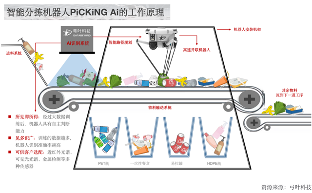 除了將固廢大數(shù)據(jù)庫、云端、多傳感器融合技術(shù)、驅(qū)控一體技術(shù)、AI識別技術(shù)集合于一體的人工智能垃圾分揀機器人,弓葉科技也將服務(wù)綜合運用于循環(huán)經(jīng)濟產(chǎn)業(yè)的其他環(huán)節(jié),構(gòu)建以AI和大數(shù)據(jù)驅(qū)動的全產(chǎn)業(yè)鏈落地,在固廢回收領(lǐng)域,實踐高效減碳,助力固廢處理智能化、數(shù)字化和自動化轉(zhuǎn)型升級。