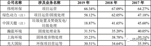 注:綠色動力從2018年年報(bào)開始將項(xiàng)目運(yùn)營業(yè)務(wù)毛利率調(diào)整為披露固廢處理業(yè)務(wù)毛利率,相關(guān)披露口徑存在一定變化;中國天楹2019年垃圾處理業(yè)務(wù)毛利率變化主要系2019年1月完成固廢管理業(yè)務(wù)收購所致。