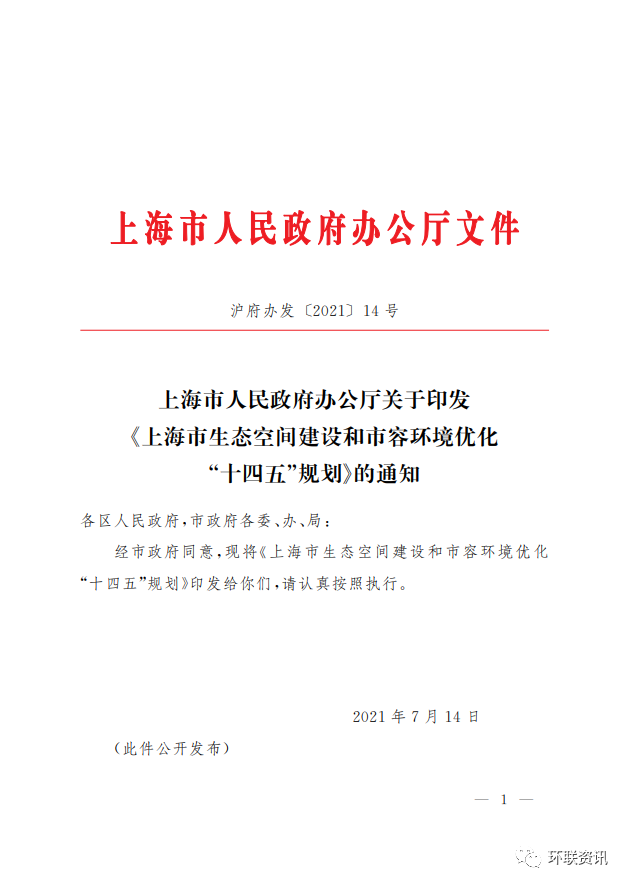 上海市人民政府辦公廳印發(fā)《上海市生態(tài)空間建設(shè)和市容環(huán)境優(yōu)化“十四五”規(guī)劃》,附全文圖解!