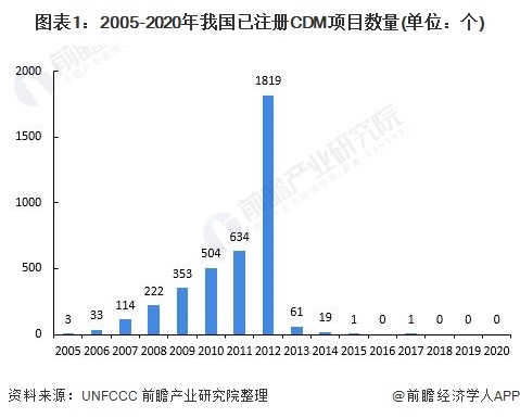 我國碳交易發(fā)展經歷了CDM項目(2005-2012)以及碳交易體系建立(2013-)階段。2006-2013年為我國CDM項目高速發(fā)展期,期間注冊備案項目3740個,占比達99%。2013年起,受制于歐盟對CDM項目的限制,國內CDM項目數急劇下降,根據UNFCCC數據,近5年我國CDM項目注冊數幾乎為零。