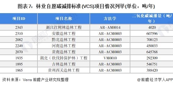 截至2021年6月,我國國際自愿碳減排標準(VCS)下林業(yè)碳匯項目數為28個,預計降低年二氧化碳排放量948.6萬噸。
