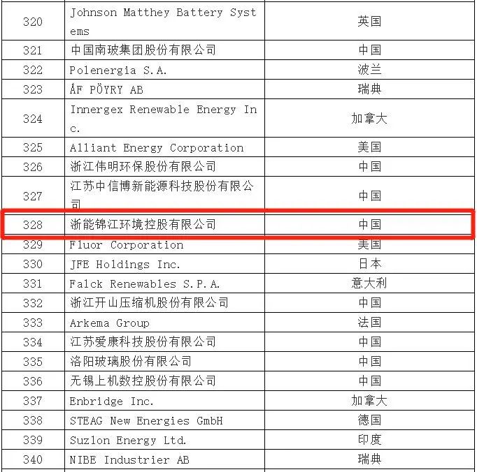 “2021年全球新能源企業(yè)500強”是由中國能源報和旗下智庫機構(gòu)中國能源經(jīng)濟研究院聯(lián)手打造,作為研究全球新能源產(chǎn)業(yè)發(fā)展的公益性評價項目,榜單客觀公正、數(shù)據(jù)詳實,是新能源行業(yè)發(fā)展的重要風(fēng)向標。其中,浙能錦江環(huán)境名列“全球新能源企業(yè)500強”第328位。