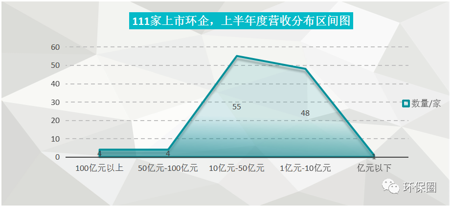 我們先看營收榜。今年上半年,111家環(huán)保上市企業(yè)累計(jì)實(shí)現(xiàn)總營收2443.77億元,相較于去年同期的2000億元,增加了22%,高于預(yù)期。111家企業(yè)中,營收實(shí)現(xiàn)正增長的高達(dá)97家,占比87%,這一占比相較于上年同期55%,大增32%,再次說明了之前被疫情沖擊、資本低估環(huán)保行業(yè),今年上半年迎來觸底反彈跡象。受中報(bào)業(yè)績推動(dòng),近期不少環(huán)保個(gè)股迎來漲停潮。從營收分布區(qū)間來看,111家上市環(huán)企中,上半年突破50億元大關(guān)有8家,除了業(yè)內(nèi)熟悉TOP7之外,如光大環(huán)境(220億元,44%)、深圳能源(132.63億元,50.9%)、中國天楹(114.64億元,7.15%)、北控水務(wù)(113.6億元,10%)、首創(chuàng)環(huán)保(86.26億元,24%)、格林美(80億元、42.51%),盈峰環(huán)境(54.5億元、-3%)外,還新進(jìn)一名危廢行業(yè)龍頭企業(yè)——浙富控股,上半年?duì)I收大增118.83%至68.73億元。仔細(xì)觀察,頭部企業(yè)陣營變化不大,相較于去年同期“8家企業(yè)有5家營收都在下滑”的不利形勢下,今年半年度TOP8企業(yè)營業(yè)收入,幾乎都實(shí)現(xiàn)了正向增長。下降一個(gè)檔次,我們發(fā)現(xiàn),半年度營收在10億元-50億元區(qū)間的就比較多了,有55家,加上之前8家,半年度營收過10億元的累計(jì)達(dá)到63家,相較于去年的50家,足足增加了13家,說明后疫情時(shí)代有企業(yè)暗暗努力,強(qiáng)勢反彈,排名提升較快有城投控股及旗下的上海環(huán)境、城發(fā)環(huán)境、中原環(huán)保等。而營收區(qū)間位于1億元-10億元的“小而美”企業(yè),也不少,有48家,它們大多是近幾年剛IPO的科創(chuàng)板、創(chuàng)業(yè)板“新兵”(如圖四所示)。圖四:111家上市環(huán)企,上半年度營收分布區(qū)間圖▼
