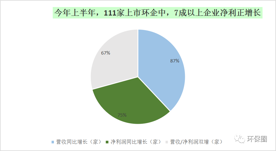 圖二:今年上半年,111家上市環(huán)企中,70%以上企業(yè)凈利潤正增長▼