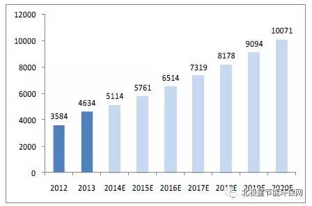 我們以“十二五”規(guī)劃目標作為參考,預計“十三五”末,全國城市生活垃圾無害化處理率達到95%,垃圾焚燒處理能力達到無害化處理總能力的50%,那么到2020年,保守估計我國城鎮(zhèn)生活垃圾焚燒無害化處理量將達到1億噸,較測算的2015年處理量5760萬噸增長4310萬噸。