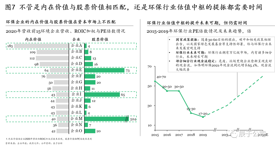 等時機:在資本市場走向成熟、理性的同時,也應認識到不管是企業(yè)內在價值與股票價值相匹配,還是生態(tài)環(huán)保行業(yè)估值中樞的提振都不是一蹴而就的,切忌“一陣風”運動。
