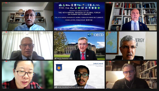 (10月29日消息)受新冠肺炎疫情影響,2021“世界城市日”紀念活動——第十六屆全球人居環(huán)境論壇年會(GFHS 2021)于10月27日至29日在線成功舉辦。本屆年會主題為“加速綠色變革與創(chuàng)新,建設健康、韌性與碳中和的城市”。聯(lián)合國《生物多樣性公約》執(zhí)行秘書伊麗莎白•瑪魯瑪•穆雷瑪、全球人居環(huán)境論壇主席、聯(lián)合國前副秘書長暨高級代表安瓦爾•喬杜里大使、世界氣象組織(WMO)副秘書長埃琳娜•馬娜昂科娃博士(代表世界氣象組織秘書長佩蒂瑞•塔拉斯教授)、亞洲開發(fā)銀行副行長班龐•蘇山多諾博士等在會上發(fā)表演講。會上還舉行了大型學術(shù)文獻——《全球人居環(huán)境論壇文集》首發(fā)儀式。