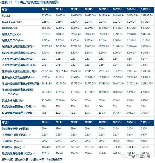 根據(jù)我們的假設(shè),可推算到2022年,生活垃圾無害化處理量可達1.7億噸,2025年可達2.2億噸,以2020年中標項目均價72元/噸和處理單價0.65元/度的上網(wǎng)電價計算,2025年垃圾焚燒處理規(guī)模將達541億元,市場空間仍大。