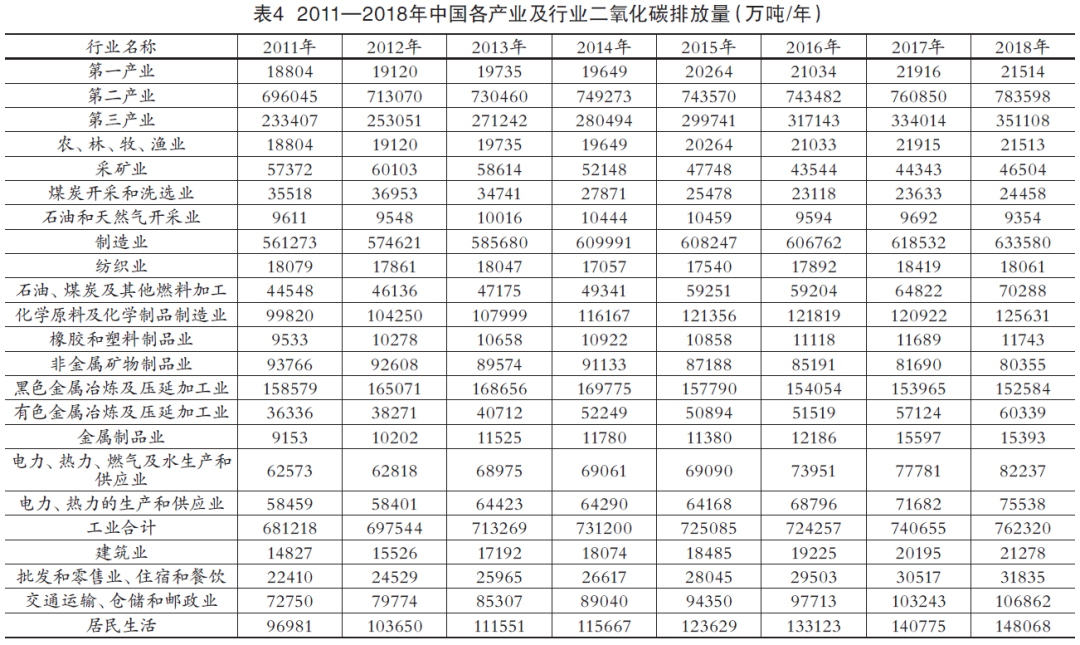 (二)中國各產(chǎn)業(yè)、行業(yè)二氧化碳排放量及測算方法