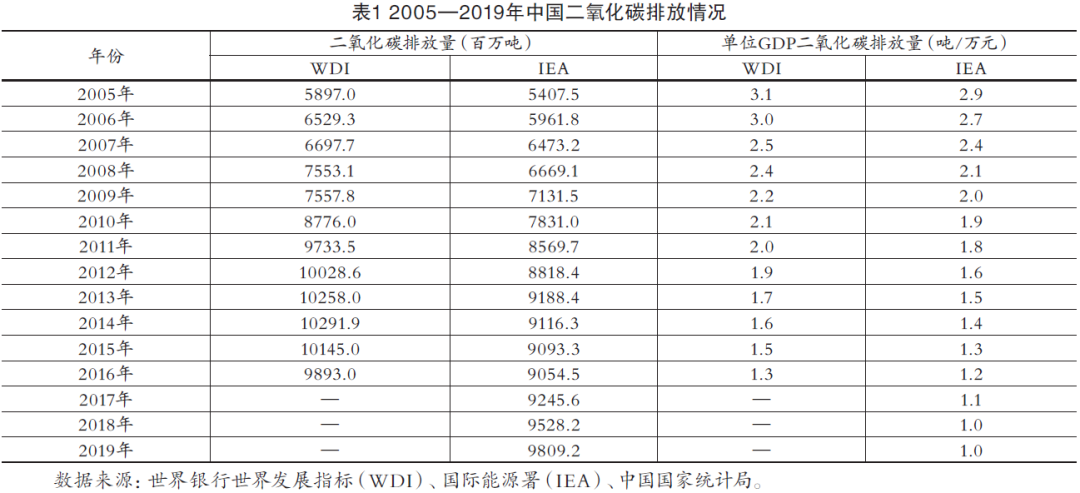 雖然中國二氧化碳排放的總量較高,但也在控制碳排放、實(shí)現(xiàn)綠色發(fā)展方面取得了積極進(jìn)展。一方面,二氧化碳排放增速明顯放緩。2005—2010年二氧化碳排放年均增速約達(dá)8%,2011—2015年下降至3%,2016—2019年進(jìn)一步下降至約1.9%。另一方面,單位GDP的二氧化碳排放強(qiáng)度逐步下降。根據(jù)IEA公布的數(shù)據(jù)進(jìn)行測算,中國單位GDP的二氧化碳排放從2005年的2.9噸/萬元逐步下降到2019年的1噸/萬元,降幅約60%。這些進(jìn)展在很大程度上受益于能源結(jié)構(gòu)的不斷調(diào)整。