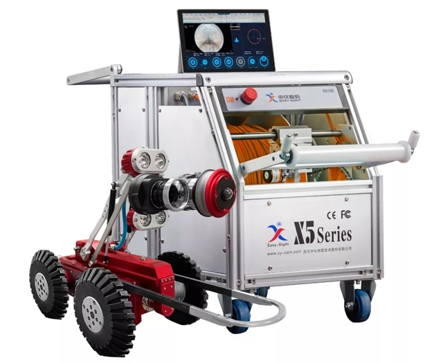 2021年中儀股份自主研發(fā)生產(chǎn),推出全景量化管道機器人。X5-H管道全景量化檢測機器人由全景鏡頭、管道側(cè)掃儀、X5-H系列爬行器、電纜盤及控制系統(tǒng)組成。檢測過程中,實時同步呈現(xiàn)管道高清視頻、橫斷面輪廓、全景圖、色譜圖等多項數(shù)據(jù)。全景量化檢測技術(shù)可輸出管道內(nèi)壁全景展開圖和管道橫斷面輪廓圖,并實現(xiàn)管道全景三維模型的構(gòu)造輸出,對管道變形、沉積、缺陷尺寸、體積進行直觀展示和量化分析,為養(yǎng)護與修復(fù)作業(yè)提供精準的數(shù)據(jù)支撐。