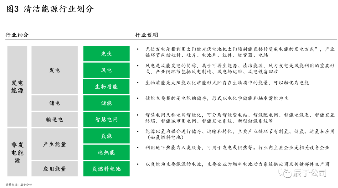 作為一家聚焦于綠色發(fā)展領(lǐng)域的專業(yè)咨詢機構(gòu),結(jié)合以往項目經(jīng)驗以及業(yè)內(nèi)習(xí)慣,辰于對綠色環(huán)保行業(yè)范圍進行了明確劃分,目前已經(jīng)持續(xù)跟蹤50多個細(xì)分領(lǐng)域(見圖1)。有意思的一點是,過去的環(huán)保行業(yè)范圍一般是指包含供水、各類污染物末端處置和治理以及環(huán)境監(jiān)測在內(nèi)的傳統(tǒng)環(huán)保領(lǐng)域,雙碳戰(zhàn)略提出后,當(dāng)人們談到“環(huán)?!睍r,更多是指“綠色環(huán)?!钡母拍睿?jié)能、清潔能源、雙碳業(yè)務(wù)等行業(yè)也被納入。