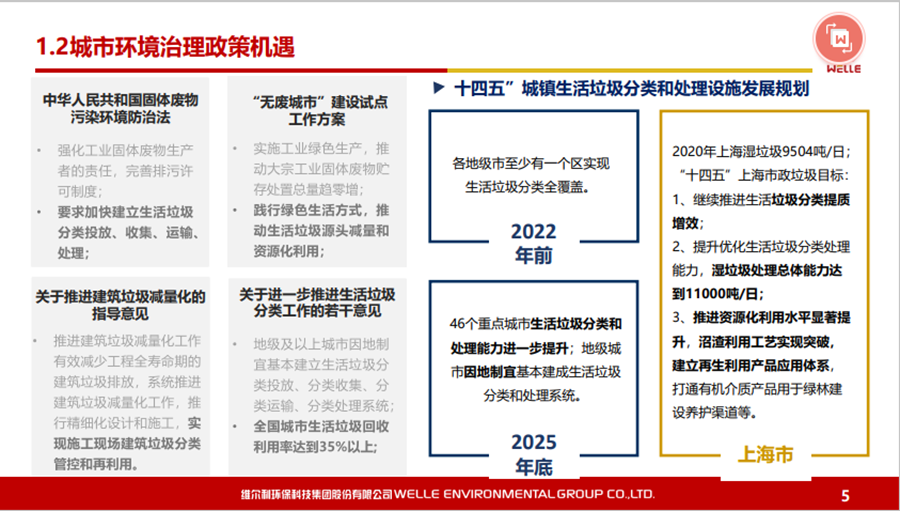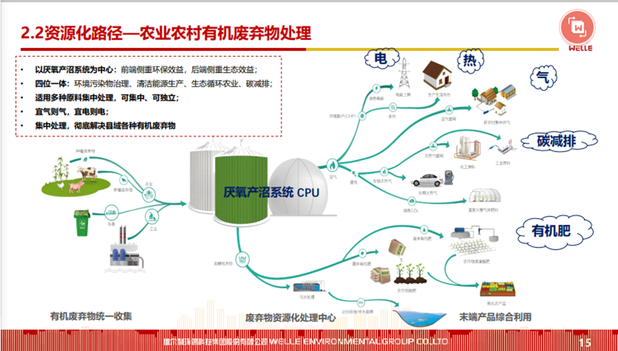 本文圍繞碳中和背景下的政策機遇、城鄉(xiāng)有機廢棄物資源化的的主要處理方法和路徑等內(nèi)容展開,同時對維爾利集團概況和發(fā)展歷程做了簡要回顧。 2021年10月20-21日,2021年中國沼氣學會學術年會暨中德沼氣合作論壇在南京舉行。作為2021年中國沼氣學會學術年會的承辦單位,維爾利環(huán)??萍技瘓F股份有限公司董事長李月中博士以《城鄉(xiāng)有機廢棄物資源化路徑探討》為主題,與大家一起探討了碳中和背景下城鄉(xiāng)有機廢棄物資源化的發(fā)展與未來。報告圍繞碳中和背景下的政策機遇、城鄉(xiāng)有機廢棄物資源化的的主要處理方法和路徑等內(nèi)容展開,同時對維爾利集團概況和發(fā)展歷程做了簡要回顧。本文根據(jù)其發(fā)言整理。▼維爾利環(huán)??萍技瘓F股份有限公司董事長 李月中今天有幸代表維爾利集團和大家做交流,作為會議的承辦方,也感謝中國沼氣學會、南京大學、德國沼氣協(xié)會給維爾利這個機會。維爾利作為專業(yè)的企業(yè),實際上歷史并不是很長,但是我們對沼氣和厭氧技術這塊有自己的獨到見解。作為一個商業(yè)機構,企業(yè)怎么能夠在競爭行業(yè)里生存和發(fā)展?在這里和大家做一些交流,和大家一起思考,同時希望在座的同仁能夠在這個行業(yè)相對比較困難的情況下抱團取暖。2020年9月,國家主席習近平在聯(lián)合國大會上提出“二氧化碳排放力爭于2030年前達到峰值,努力爭取2060年前實現(xiàn)碳中和”。2021年3月15日,習近平總書記主持召開中央財經(jīng)委員會第九次會議并發(fā)表重要講話強調(diào),要把碳達峰、碳中和納入生態(tài)文明建設整體布局,拿出抓鐵有痕的勁頭,如期實現(xiàn)2030年前碳達峰、2060年前碳中和的目標。從能源結構上來說,有機垃圾資源化產(chǎn)生的生物質能源在實現(xiàn)雙碳目標上具有獨特意義。這實際上也是倒推企業(yè)行業(yè)轉型。對大家來說,“碳達峰碳中和”既是一個挑戰(zhàn)也是一個機會。這里面包括了現(xiàn)在我們推出的對城市環(huán)境,對農(nóng)村農(nóng)業(yè)環(huán)境可能存在的機會,這些機會對環(huán)保產(chǎn)業(yè)來說,個人認為受到政策影響比較大。為什么德國2016年在農(nóng)業(yè)生物天然氣領域有下滑?是因為某些政策出現(xiàn)了不到位的情況,一些企業(yè)就不愿意去做。在碳達峰、碳減排的前提下,我們有很多的機會,但這個機會要真正落實,還是要國家從頂層設計到具體的政策到位,才能夠使這個行業(yè)有比較好的發(fā)展。在城市環(huán)境治理領域,城市有機廢棄物(垃圾量)非常大。上海實施垃圾分類以后,2020年上海濕垃圾的產(chǎn)生量是每天在9500-10000噸左右,也就是說1/3為濕垃圾。這對焚燒廠來說,是一個巨大的減負,但同時對處理能力也有了條件限制。我們深度參與了這方面工作,現(xiàn)在上海的處理能力大概為4000噸左右,意味著上海的濕垃圾處理能力還有60%在建,徹底實現(xiàn)垃圾分類的路還很遠。北京情況更為嚴重。原來北京只有幾個堆肥廠,原來只是三相做一點小的堆肥,如果真的要實現(xiàn)垃圾源頭分類,大概4、5千噸的垃圾處理設施要重新建設。在農(nóng)業(yè)農(nóng)村環(huán)境治理領域,包括農(nóng)產(chǎn)品加工這方面,整個市場規(guī)??赡芨蟆8魑磺拜叾家呀?jīng)做了一些介紹,我們是不是能夠全部實現(xiàn)資源化處理,是值得商榷的。對于不同的原料,我們應該怎么處理?作為企業(yè),我們推行起來還是有一定的難度。我們現(xiàn)在的這些大型的沼氣項目,它的源頭、原料、收益、收益成本,包括最終的產(chǎn)品出路,收集半徑到底多少是最合理的?實際上是需要根據(jù)不同有機廢棄物的種類以及最終產(chǎn)品的出路來規(guī)劃項目規(guī)模,而不是按照政策要求。比如一萬方的沼氣工程才稱得上大型沼氣項目,才有補貼,這樣的項目就不一定能夠真正地實現(xiàn)盈利。 下面大概講一講我們最近對城鄉(xiāng)有機廢棄物資源化的主要處理方法和路徑。