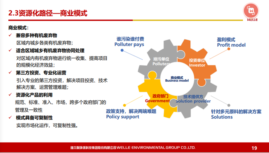 當前,有些城市對餐廚垃圾并不是分得特別清楚。如在紹興和上海,主要是餐廚協(xié)同處理。而在有些地方,比如荊門,餐廚垃圾和污泥協(xié)同處理,這樣使得厭氧反應和有機物都會大大加強,這也是我們這幾年積累的一些經(jīng)驗。在農(nóng)業(yè)農(nóng)村有機廢棄物處理方面,特別要講的是和杭能的合作。創(chuàng)始人蔡昌達先生是農(nóng)業(yè)沼氣領域的老人,深耕行業(yè)四十多年。維爾利與杭能深度合作后,幫助我們在這個行業(yè)里建立起了行業(yè)地位??偨Y起來,無論是在預處理技術還是厭氧處理,沼氣儲存和利用,以及深度延伸的產(chǎn)品開發(fā),都有新的技術或者產(chǎn)品。尤其是這幾年,我們通過數(shù)字化提升了整個設計、裝備制造、運維的管理能力,有機會也可以和大家做深度交流。僅僅看沼氣,大家還是覺得收益不能保證,尤其算賬不一定能算得過來。即使現(xiàn)在有碳減排的收益,但是要真正形成交易,變成真金白銀也不是那么容易的事。對此我們也做了新的探索,比如對于有機固渣、食用蛋白,或者是做一些食用蛋白的研究,這塊是值得探討的。中國在飼料蛋白這塊缺少量是非常大的,所以有一些機會。但是真的規(guī)?;\行以后,食用蛋白的標準是不是能夠作為大規(guī)模飼料的原料,還需要做一些探討。目前,我們和國外一些有規(guī)模的機構也在進行一些合作,在國內(nèi)做現(xiàn)代化大規(guī)模養(yǎng)殖的示范項目。其他的一些應用,如肥料化的應用也在做探討,甚至我們在做農(nóng)業(yè)示范園區(qū)的實驗,更多是希望在最終產(chǎn)品的出路上做一些嘗試。在商業(yè)模式上,我們企業(yè)也需要做一些思考。無論是和投資機構、投資人,或者是排污企業(yè)、政府、技術設備供應商等,我們怎么通過共贏的模式創(chuàng)新,能夠形成一些深度的商業(yè)合作?這塊我們也在做不同的思考。環(huán)境保護涉及到一些新的能源,結合鄉(xiāng)村振興,一、二、三生態(tài)聯(lián)動,也給我們這個行業(yè)帶來非常多的機會,需要企業(yè)或者在座的專家同仁一起探討,共同發(fā)聲,才能夠把行業(yè)做得更好。在上海的松江、老港、金山、嘉定等濕垃圾處理項目,我們都作為技術設備供應商EPC深度參與。另外,像維爾利紹興市循環(huán)生態(tài)產(chǎn)業(yè)園(一期)PPP項目,最近可能廚余還要擴大四倍。這塊的產(chǎn)品是以沼氣為主,已經(jīng)做了生產(chǎn)線,但是還沒有進入商業(yè)運行。這些項目相對來說還沒有真正帶有垃圾分類的本質。對于大城市現(xiàn)在還是以無害化為主,如果未來要到更好的資源化,跟農(nóng)業(yè)結合的可能更有前景。整個產(chǎn)業(yè)園餐廚廚余垃圾有天然氣的回收,整個項目協(xié)同了以后效益還是比較好的。典型案例—農(nóng)業(yè)有機廢棄物資源化在農(nóng)業(yè)項目方面,我們在梁家河農(nóng)業(yè)部推了“果沼畜”,對促進高品質農(nóng)業(yè)發(fā)展有非常好的作用。另外,我們在“黑龍江德潤項目”做了以秸稈為原料的大型沼氣項目,山東民和牧業(yè)(二期)4.2萬方生物天然氣項目,包括雞糞、秸稈等等項目,這些項目在國內(nèi)都有比較好的示范作用。典型案例—城鄉(xiāng)混合原料有機廢棄物資源化我們在徐州國新做了生物天然氣項目,原料有秸稈、餐廚垃圾、糞便等等,這種項目要協(xié)同處理,未來競爭力相對比較強,包括原料的成本、出資費用等都是有保障的,能夠把環(huán)保和能源化利用進行深度結合。中廣核衡水混合原料10萬方生物天然氣項目等,都在國內(nèi)有比較好的示范作用。王凱軍老師講到,國家發(fā)改委支持了64個大型規(guī)?;锶細庠圏c項目,我們總共做了22個。這些項目的建設問題不是很大,但是在運行方面,尤其是如何能夠盈利地運行,確實是有些問題的。我們后來做 的“廣西武鳴”項目,工業(yè)原料原來做的是木薯花,后期原料供應不足,只好通過買其他原料來解決。從運營上來說,需要非常多的資源調(diào)配,最終有可能給一些政策,能夠把餐廚、廚余垃圾建設起來,項目才能盤活。類似這樣的項目,我們希望能夠在各位的支持下能夠運行起來。起碼自己建設的一些項目能夠運行起來,真正地做成示范標桿。實際上,項目原料是多元的。但是從投資以及收益來說,復盤以后算下來,如果后面增加碳減排的設計,這種項目收益就非常好?,F(xiàn)在還不能直接作為經(jīng)濟補償,但是起碼現(xiàn)在收益可以達到6%,也可以到8%或者10%。這種項目未來是有預期的,各地環(huán)境集團會大面積地來推廣。我們認為在央企、國企的帶領下,這樣的項目既能夠承擔國家責任,又能夠把產(chǎn)業(yè)帶動起來,具有很好的示范作用。下面再分享一個案例,我們和優(yōu)然做了幾個項目,現(xiàn)在奶牛行業(yè)的牛糞、沼渣,原來大部分都是用耗氧堆肥做處理,現(xiàn)在通過厭氧以后,沼渣進一步做回收,收益也還可以,現(xiàn)在也有深度的合作,項目生產(chǎn)包做起來以后,能夠做一個3A的平臺。總的來說,這些項目要實現(xiàn)盈利,確實相對比較艱苦。但是我們相信,隨著國家推綠色、綠電、綠氣,或者碳減排政策逐步出臺,這個行業(yè)會越來越好。