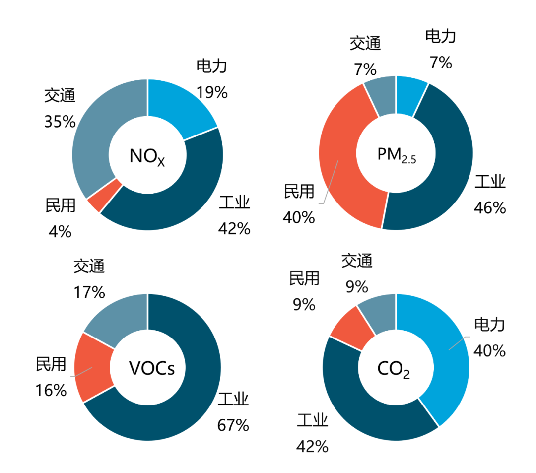 數(shù)據(jù)來源:污染物清單來自清華大學(xué) MEIC 清單結(jié)果 [6],CO2 排放數(shù)據(jù)來自生態(tài)環(huán)境部環(huán)境規(guī)劃院碳情速報(bào)研究結(jié)果 [19]