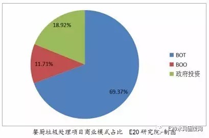 (2)運營模式不成熟。我國餐廚垃圾處理主要本著政府主導、企業(yè)參與的原則,投資模式目前主要有政府投資、BOT、BOO等。據(jù)E20研究院統(tǒng)計,目前在我國的餐廚垃圾處理項目中,主要以BOT模式為主。在已知的111個餐廚垃圾項目中,有69.37%的項目采用BOT模式運營。