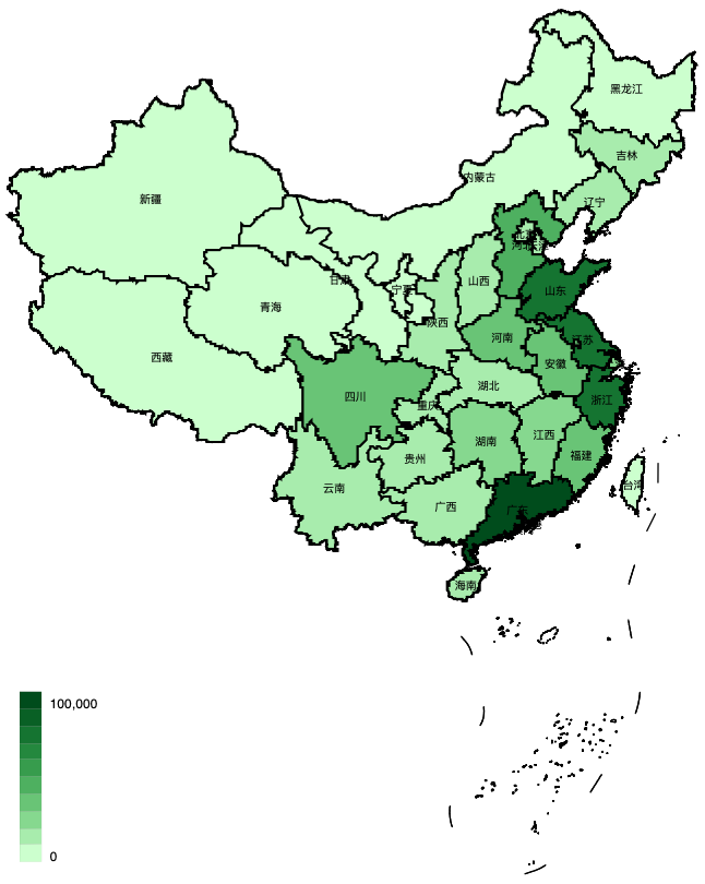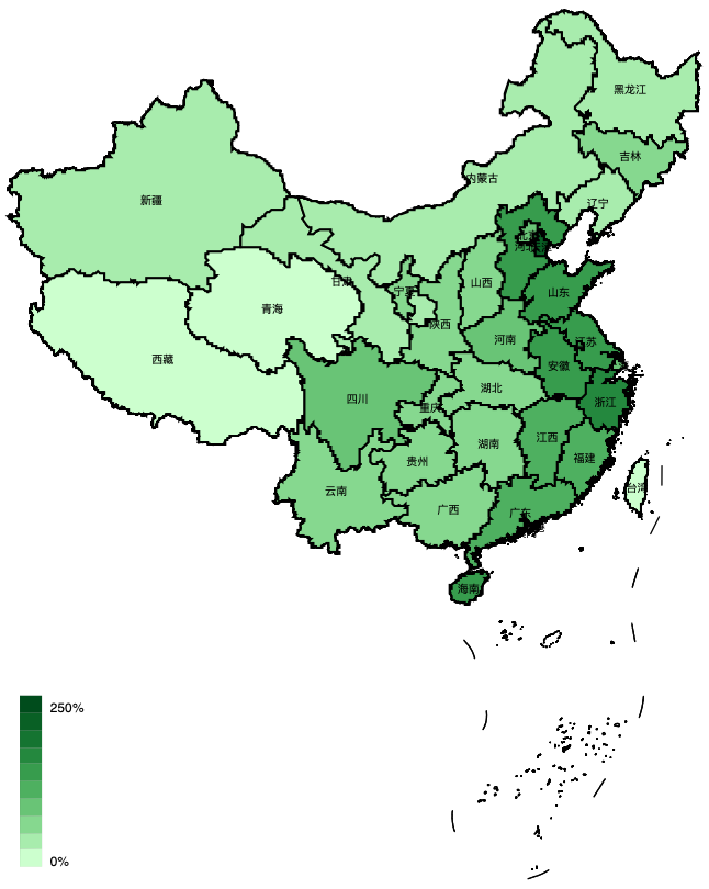 注:青海西藏為0,另外項(xiàng)目團(tuán)隊(duì)未統(tǒng)計(jì)我國港澳臺(tái)地區(qū)情況。