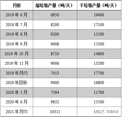 據(jù)上海市綠化市容局公布的數(shù)據(jù)顯示(表1所示),2019年7月,上海廚余(濕)垃圾分出量達(dá)到8200噸/天,較2018年年底增長(zhǎng)了110%。2020年6月,上海廚余垃圾分出量達(dá)到9632噸/天,較2019年同期增長(zhǎng)近40%,2021年濕垃圾產(chǎn)量平均已經(jīng)超過1萬噸/日,分類成效遠(yuǎn)遠(yuǎn)走在國內(nèi)前端。預(yù)計(jì)上海廚余垃圾分出總量的峰值可以達(dá)到11300噸/天,其中家庭廚余占6800噸/天,餐廚垃圾3000噸/天,其他濕垃圾1500噸/天。