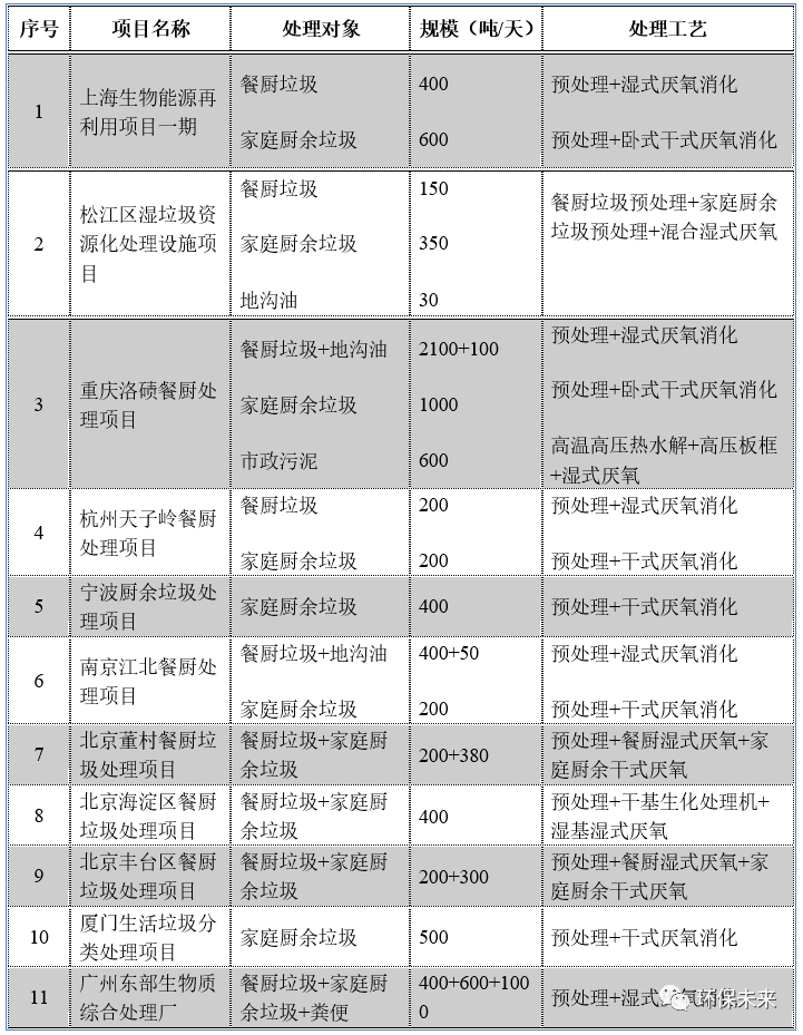 目前歐盟各成員國主要通過高價(jià)收購、投資補(bǔ)貼、減免稅費(fèi)和配額制度等可再生能源政策和措施推動(dòng)廚余垃圾回收利用技術(shù)的發(fā)展,近十年來歐洲廚余垃圾處理主要以厭氧消化和堆肥為主,但規(guī)模均偏?。?00噸/天以下),多為家庭廚余垃圾和餐廚垃圾混合處理,物料含固率高,雜質(zhì)含量相對(duì)較少,有機(jī)質(zhì)含量高。
