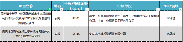 3月的標(biāo)王項(xiàng)目為云南滇中新區(qū)小哨國(guó)際新城水生態(tài)環(huán)境建設(shè)及綜合開發(fā)利用EOD項(xiàng)目及配套基礎(chǔ)設(shè)施建設(shè)項(xiàng)目,斬獲該項(xiàng)目的中交一公局集團(tuán)有限公司、中交一公局集團(tuán)水利工程有限公司、中交一公局第四工程有限公司自然有無上榮光,此外,中交還參與中標(biāo)了13.8億元的嘉興市九水水環(huán)境生態(tài)修復(fù)工程(一期)工程設(shè)計(jì)施工總承包項(xiàng)目,兩大項(xiàng)目總投資超百億元。