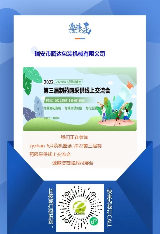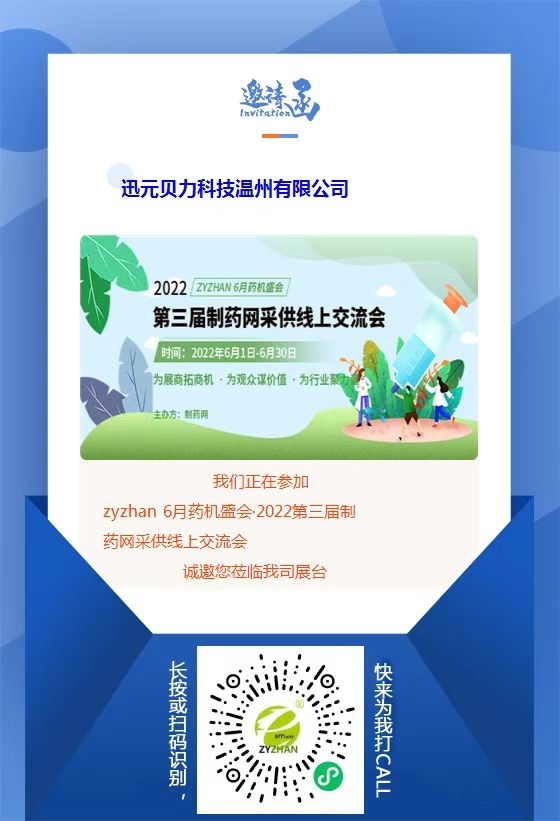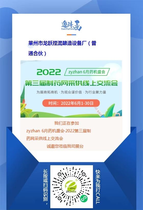 由制藥網(wǎng)主辦的zyzhan 6月藥機盛會——2022第三屆制藥網(wǎng)采供線上交流會(在線展會)(簡稱“zyzhan 6月藥機盛會”)即將于2022年6月1日-6月30日舉行。本次盛會設(shè)原料藥機械館、制劑機械館、儀器儀表館、藥品包裝機館、制藥用水/氣設(shè)備館、通用機械設(shè)備館、其他制藥設(shè)備館,目前超百家企業(yè)都已入駐相應(yīng)展館,正在等待與您相見!