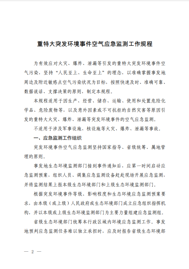 原標(biāo)題:關(guān)于印發(fā)《重特大突發(fā)環(huán)境事件空氣應(yīng)急監(jiān)測工作規(guī)程》的通知