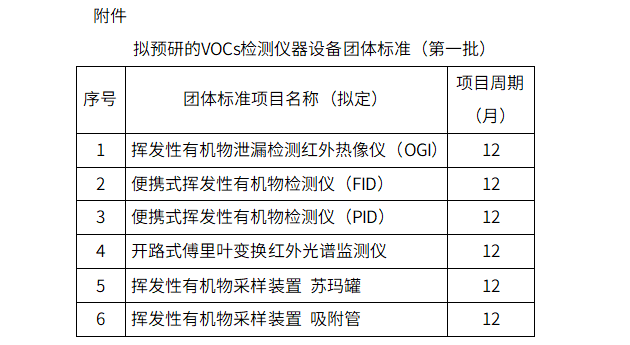 附件:擬預(yù)研的VOCs檢測儀器設(shè)備團(tuán)體標(biāo)準(zhǔn)(第一批)