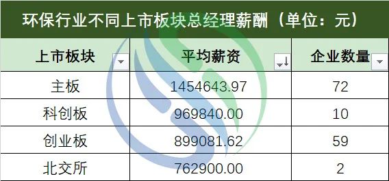 以上趨勢和環(huán)保行業(yè)整體薪資水平基本保持一致。對此,中國水網(wǎng)也曾在《21年平均工資公布!環(huán)保類收入排名依然倒數(shù),且增速墊底》一文中分析過這背后的三層原因:第一,是外部的不確定因素增加。2018年,嚴(yán)控金融風(fēng)險(xiǎn)使財(cái)稅政策和金融政策持續(xù)收緊,以及PPP項(xiàng)目規(guī)范化調(diào)整等,讓企業(yè)面臨新的融資困境,一部分企業(yè)已經(jīng)因此受到了嚴(yán)重打擊。而2020年持續(xù)至今的新冠疫情則將環(huán)境產(chǎn)業(yè)和企業(yè)發(fā)展推向變中之變。疫情的影響在過去五年環(huán)保上市公司總經(jīng)理年薪對比數(shù)據(jù)中尤為明顯:2017年到2020年環(huán)保上市公司總經(jīng)理年薪穩(wěn)步上升,從2017年的101.96萬元上升至2020年的123.1萬元,上升幅度超21萬元。到了2020年,受疫情影響,各大環(huán)保企業(yè)面臨停工停產(chǎn)等問題,或許是企業(yè)管理層對未來預(yù)計(jì)不樂觀,多家企業(yè)下調(diào)了2021年企業(yè)年薪水平。總經(jīng)理平均年薪由2020年的123.1萬元下降至2021年的118.18萬元,下降幅度近5萬元。▼注:圖中樣本企業(yè)數(shù)量來源于wind不過不用慌,從年薪中位數(shù)來看,環(huán)保行業(yè)過去5年來的總經(jīng)理年薪水平還是保持了穩(wěn)定的增長趨勢,從2017年至2021年,上漲近24萬元,增長達(dá)38.29%。第二,是企業(yè)盈利難度提升。根據(jù)上市環(huán)保企業(yè)已經(jīng)發(fā)布的2021年業(yè)績情況整體來看,2021年環(huán)保產(chǎn)業(yè)的盈利水平較2020年有所下降,有多家企業(yè)的凈利潤出現(xiàn)了虧損,有約近四成的企業(yè)出現(xiàn)了凈利潤的下滑,其中有個(gè)別企業(yè)下滑幅度相對較大。第三,是民營企業(yè)經(jīng)營難。國企大舉接盤環(huán)保民營企業(yè)浪潮的推進(jìn),帶來了行業(yè)的重新洗牌。在經(jīng)濟(jì)下行壓力下,國際形勢的不確定性、疫情的反復(fù)等等因素都為民營企業(yè)的經(jīng)營帶來了挑戰(zhàn)。筆者從上市板塊、企業(yè)注冊地、上市地點(diǎn)三個(gè)維度進(jìn)行分類,分析環(huán)保上市公司總經(jīng)理年薪水平,看看環(huán)保企業(yè)如何上市,員工“最劃算”。