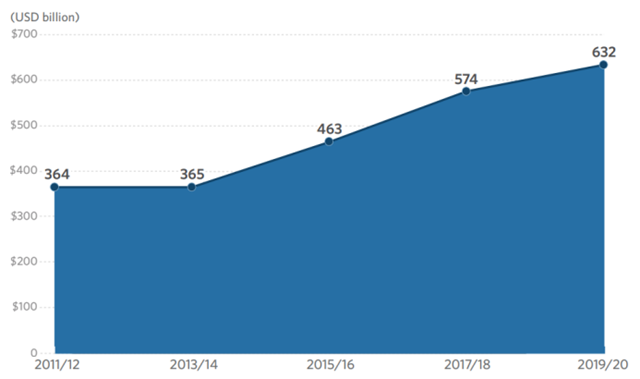 家庭支出是年度私人氣候融資的第三大份額,在2019/2020年增加到550億美元。其中,家庭在電動汽車的年度消費支出為250億美元,比2017/2018年減少50億美元,這一減少主要是由于企業(yè)改進了其購置電動汽車的相關(guān)統(tǒng)計數(shù)據(jù)。其次,小型太陽能電池板的部署達到250億美元,主要由美國和中國驅(qū)動。