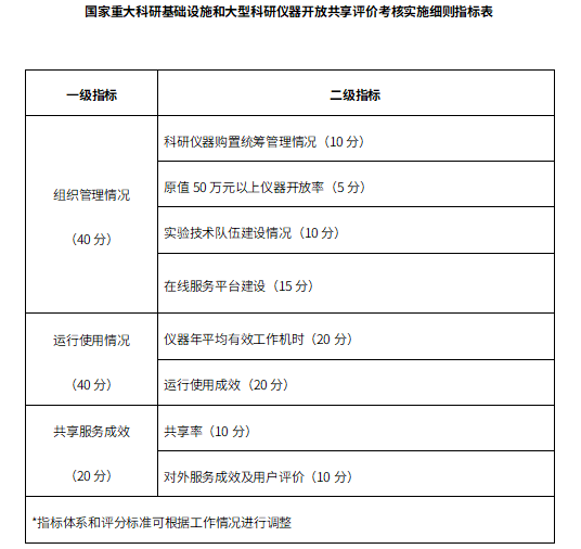 國(guó)家重大科研基礎(chǔ)設(shè)施和大型科研儀器開(kāi)放共享評(píng)價(jià)考核實(shí)施細(xì)則
