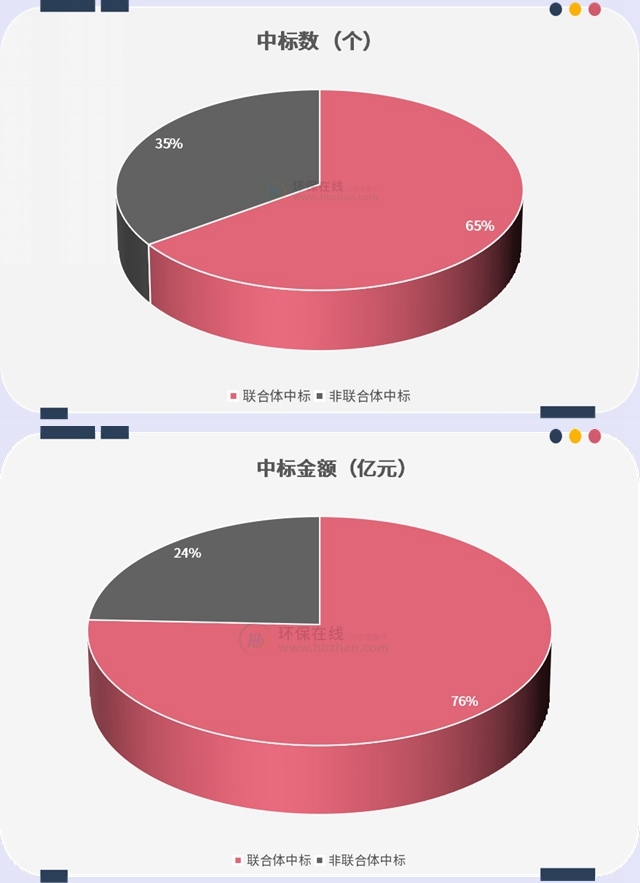 另一個(gè)很明顯的特點(diǎn)是,這些10億級(jí)環(huán)保項(xiàng)目的中標(biāo)方多以聯(lián)合體方式出現(xiàn),“設(shè)計(jì)+勘查+建造+運(yùn)營”系列任意組合,地方包攬大標(biāo)也是常規(guī)操作。并且,國資央企“當(dāng)?shù)?rdquo;可謂相當(dāng)明顯了。