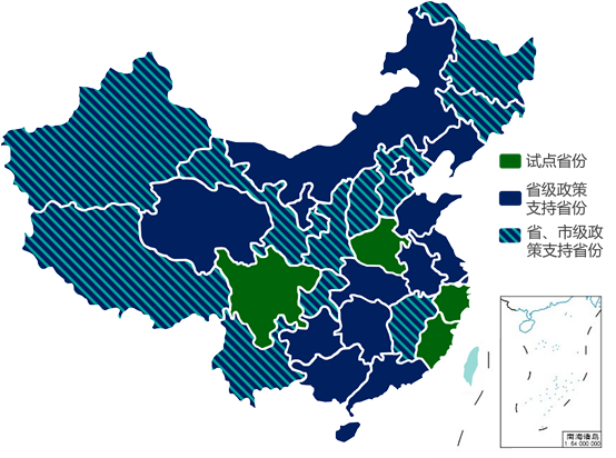 注:深藍(lán)色表示省級政策支持,淺藍(lán)色表示市級政策支持,淺灰色表示區(qū)級政策支持