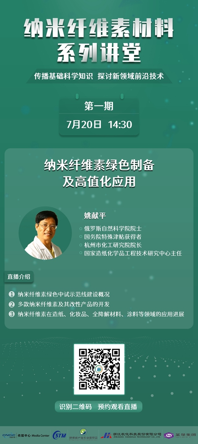 納米纖維素以植物纖維為原料,資源豐富,綠色低碳;具有輕質(zhì)高強(qiáng)、可生物降解等特點(diǎn),被視為“后碳纖維時(shí)代”的高性能前沿新材料;可應(yīng)用于全降解及輕質(zhì)高強(qiáng)材料、高阻隔生物材料、造紙、涂料、化妝品、醫(yī)藥化工等領(lǐng)域,未來發(fā)展空間巨大。為此,CSTM生物基化工材料技術(shù)委員會(huì)、環(huán)保紙產(chǎn)業(yè)專業(yè)委員會(huì)、北京生產(chǎn)力學(xué)會(huì)、杭州化工研究院、西南工業(yè)大學(xué)、南京林業(yè)大學(xué)特?cái)y手中國(guó)化工信息中心傳媒中心圍繞納米纖維素的新技術(shù)與高值化應(yīng)用,精心組織海內(nèi)外專家學(xué)者開設(shè)“納米纖維素材料系列講堂”,旨在傳播納米纖維素相關(guān)基礎(chǔ)科學(xué)知識(shí),共同探討相關(guān)新領(lǐng)域的前沿技術(shù),加強(qiáng)學(xué)術(shù)界與工業(yè)界互聯(lián)互通,促進(jìn)產(chǎn)研對(duì)接,助力生物質(zhì)基功能材料行業(yè)高質(zhì)量發(fā)展。