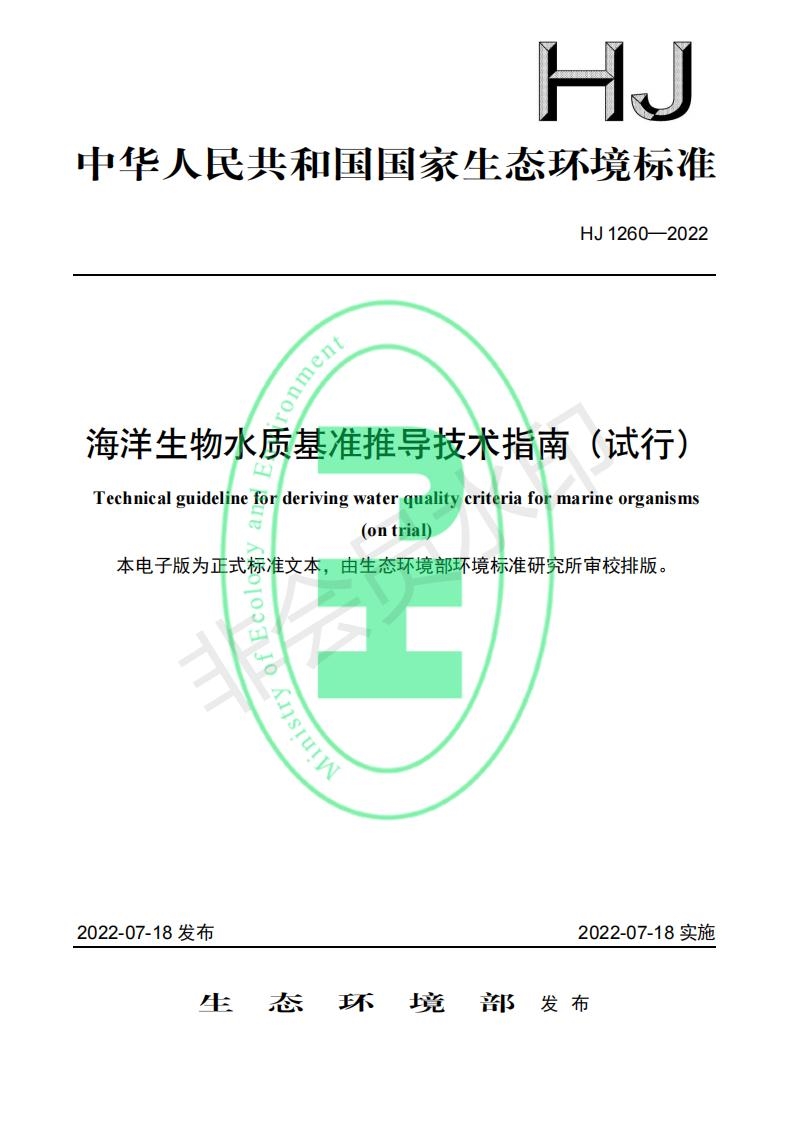《海洋生物水質(zhì)基準(zhǔn)推導(dǎo)技術(shù)指南(試行)》.pdf
