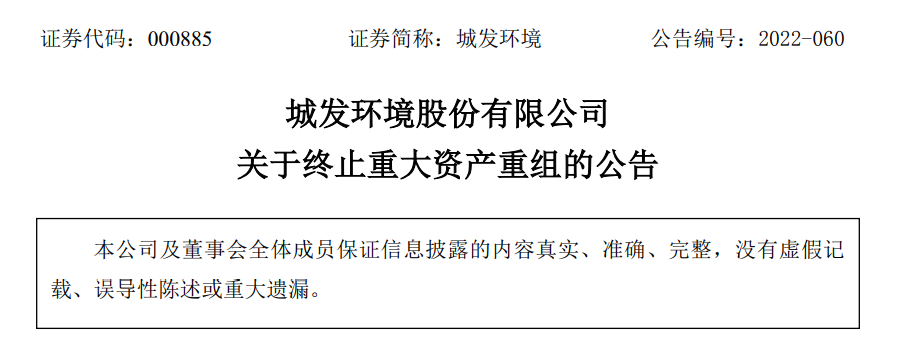 據(jù)公告顯示,終止本次重大資產(chǎn)重組的原因是城發(fā)環(huán)境自籌劃本次重大資產(chǎn)重組事項以來,嚴(yán)格按照相關(guān)法律法規(guī)的要求,與交易對方及其他相關(guān)雙方持續(xù)進行磋商與研討,并根據(jù)磋商結(jié)果積極推進相關(guān)盡職調(diào)查、審計、信息披露、內(nèi)部決策等工作。鑒于本次重大重組方案論證歷時較長,相關(guān)市場環(huán)境較本次交易籌劃之初發(fā)生較大變化。經(jīng)審慎研究分析,為切實維護城發(fā)環(huán)境及全體股東利益,經(jīng)與啟迪環(huán)境協(xié)商,雙方?jīng)Q定終止本次重大資產(chǎn)重組事項。根據(jù)法律法規(guī)及公司章程規(guī)定,經(jīng)雙方充分溝通及友好協(xié)商,城發(fā)環(huán)境董事會經(jīng)審慎研究后,依法履行了相關(guān)審議程序,終止本次重大資產(chǎn)重組。同時,另一則公告顯示,城發(fā)環(huán)境與啟迪環(huán)境簽署的戰(zhàn)略框架性協(xié)議。合作內(nèi)容、合作機制與合作期限等事項的具體實施尚存在不確定性,具體的項目合作協(xié)議或項目開展方案尚需雙方進一步協(xié)商確定。公告顯示,基于城發(fā)環(huán)境在環(huán)保項目建設(shè)、區(qū)域市場拓展、環(huán)保技術(shù)研發(fā)及人員交流等方面與啟迪環(huán)境已經(jīng)開展了深入、全面的合作,具備良好的合作基礎(chǔ),為延續(xù)雙方友好合作關(guān)系、充分發(fā)揮雙方在環(huán)保、能源領(lǐng)域的發(fā)展優(yōu)勢,公司與啟迪環(huán)境共同簽署了《全面戰(zhàn)略合作協(xié)議》,以進一步推動雙方交流合作。
