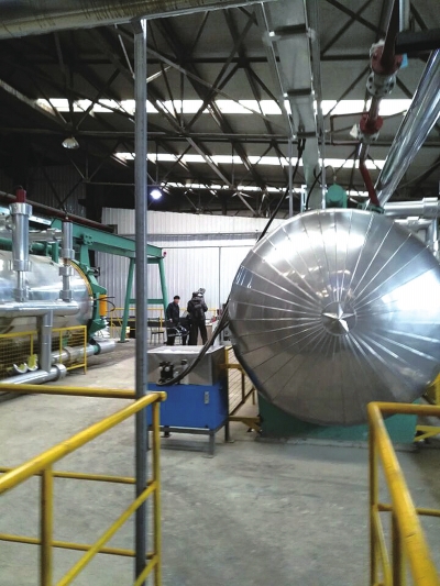 進入廠區(qū),現(xiàn)代化的廠房、辦公樓和景觀綠化,似乎和餐廚垃圾處理工廠不相符。更讓人意外的是,從設(shè)有辦公、實驗、生產(chǎn)控制中心、會議室、生產(chǎn)流程演示、產(chǎn)品成列等功能的現(xiàn)代化辦公樓出來后,走進生產(chǎn)車間,除了可見4個大型餐廚垃圾喂料口外(即餐廚垃圾運輸車傾倒口),全是大型箱體、罐體,以及各種粗細(xì)的管子相連,一道道工序?qū)崿F(xiàn)了自動化,看不見一點餐廚垃圾,這里像一座現(xiàn)代化的啤酒車間。“完全實現(xiàn)了自動化。”