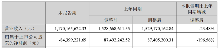 公司上半年?duì)I業(yè)收入為117,016.56萬元,同比下降23.48%;實(shí)現(xiàn)歸屬于上市公司普通股東的凈利潤-8,439.92萬元,同比下降196.56%。